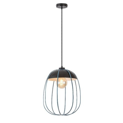 A Kék rácsos függesztett lámpa, amely a Svens Rábalux 72024 típusjelzést viseli, modern megjelenésű világítási megoldás lakóterekbe. A lámpatest fém anyagból készült, matt fekete és kék színkombinációval, amelyet textil kábel egészít ki. Egy darab E27 fog