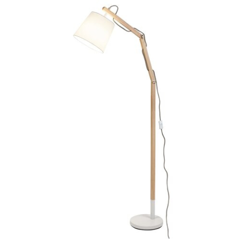Skandináv stílusú állólámpa 1 db foglalattal, vezetékes kapcsolóval. Max. 157 cm magas, bükk színű fából és fehér színű fémből készített, állítható szerkezet fehér színű textil lámpabúrával. A állólámpa E27-es foglalatú, max. 60W teljesítményű energiataka..