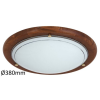 Időtlen megjelenésű, fa, fém és üveg kombinációjú, mennyezeti lámpa, 2 darab E27-es foglalattal. 38 cm átmérőjű, tölgy színű fa, fém lámpatest, fehér színű opálüvegbúrával. A lámpatest E27-es, max. 60W teljesítményű energiatakarékos LED fényforrásokkal is..