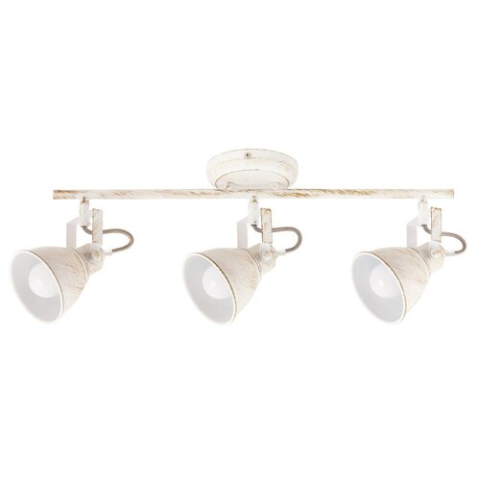 Vintage stílusú mennyezeti spotlámpa 3 db foglalattal. 52,5 cm széles, antik fehér színű fém lámpatest és pozícionálható lámpabúrák. A mennyezeti lámpa E-14-es foglalatú, max. 3x 40W teljesítményű energiatakarékos fényforrásokkal is használható...