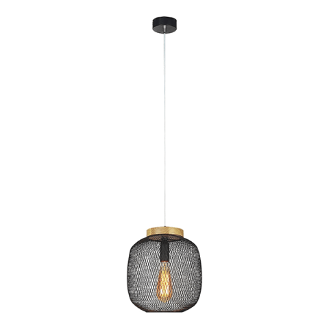 A skandináv stílus szerelmeseinek ajánljuk a Rupert függesztéket. Ez a jellegzetes lámpa rendkívül hangulatos kiegészítője lehet a nappali, az étkező vagy a konyha berendezésének. A fekete színű modell rácsos búrája teljesen körbeveszi a fényforrást, a lámpa kisméretű, kerek dísztalp segítségével rögzíthető a mennyezethez. A fém lámpa búráját valódi fából készült, kerek rátét teszi még különlegesebbé. A Rupert egy darab, legfeljebb 40 W teljesítm