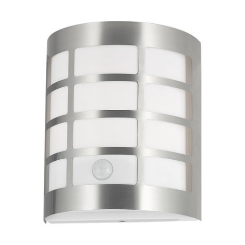 Modern Sevilla Kültéri fali lámpa E27 szatin króm Fényforrás színhőmérséklet: Fényforrás fényárama (Lumen): Fényforrás műszaki adatok: LED technológia: Nem IP védettség: IP44 Mozgás érzékelő műszaki adatok: 0-5m, 100° Lámpa színe: szatin króm Búra