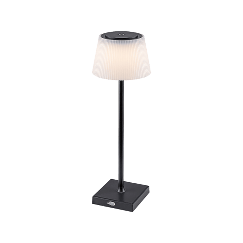 A modern stílusú Taena asztali lámpa sokkal többet nyújt, mint egy hasonló célra készült átlagos modell. Az extra funkciókkal ellátott lámpa remek választás a nappaliba vagy a hálószobába. A fémből, fekete színben készült modellt rakott szoknyára emlékeztető fehér, lefelé enyhén szélesedő műanyagbúra és négyzet alakú dísztalp egészíti ki. A Taena beépített LED fényforrással rendelkezik, amelynek a teljesítménye 4 W, élettartama pedig 25 000 óra, a l