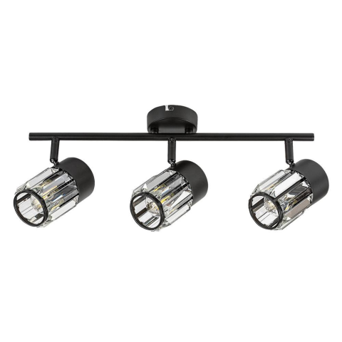 A Rábalux Venaro hármas mennyezeti spotlámpát azoknak ajánljuk, akik otthonuk számos helyiségében használható, klasszikus stílusú lámpát keresnek. A spot lámpa fémből, fekete színben készül, és kisméretű, kerek dísztalppal rögzíthető a mennyezetre. A lámpafejek a dísztalphoz erősített tartórúdon helyezkednek el sorban, egymás mellett. A búrák anyaga üveg; hengeres forma és kristályra emlékeztető felület jellemzi őket. A lámpafejek a gömbcsuklós megol