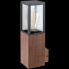 A modern stílusú Wales kültéri fali lámpa különösen jól mutat a teraszon fából készült kiegészítők társaságában. A Wales fa mintázatú alsó részéhez matt fekete kerettel ellátott átlátszó üvegbúra kapcsolódik, a lámpa az alsó részből kinyúló fa mintázatú elem segítségével rögzíthető a falra. Természetesen nemcsak a teraszon, hanem a ház külső falán másutt is felszerelhetjük ezt a modellt: megvilágíthatjuk vele a bejárathoz vezető gyalogutat