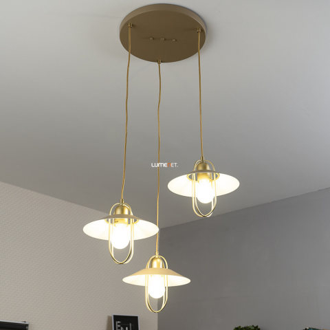 A Nesrin Rábalux 3520 arany színű függesztett lámpa három darab E27 foglalattal rendelkezik, amelyekbe cserélhető fényforrások helyezhetők. A lámpatest anyaga fém, színe arany és bézs kombinációja, stílusa pedig loft, amely modern és ipari terekbe illeszk