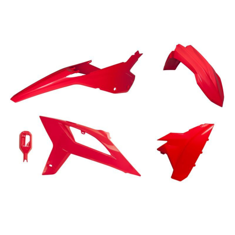 RACETECH Teljes Műanyag Karosszéria Készlet A RACETECH egy szakértő műanyaggyártó, amely kifejezetten terepmotorokhoz készít karosszériaelemeket. Ezek a testreszabott alkatrészek teljes egészében injekciós módszerrel formázott műanyagból készülnek, melyek színei az UV-sugárzásnak is ellenállnak, így hosszú távon megőrzik eredeti fényüket és színüket. Az alkatrészeket tartalmazó csomag a következőket foglalja magában: Előlapi sárvédő