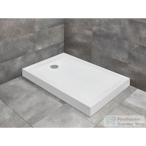 Szögletes aszimmetrikus akril zuhanytálca előlappal A felülete olyan, mint a pattintott pala, csúszásmentes Ajándék ST 620 szifonnal.