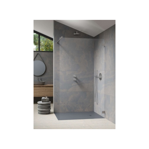Essenza Pro Brushed Nickel Walk-in szálcsiszolt króm zuhanyfal 160 átlátszó Modern, letisztult dizájnú walk-in zuhanyfal 6 mm vastag Easy Clean edzett üveggel. 160 cm széles, 200 cm magas zuhanyfal univerzális felhasználással és intelligens stabilitásmeg