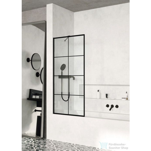 50-60-70-80-90-100 cm széles, fix fekete kádparaván fekete Frame mintával. 8 mm vastag Easy Clean vízlepergető bevonattal ellátott edzett üveggel gyártjuk, mely elsőrendű megoldás vízkőfoltok, lerakódások megakadályozására. Megvásárolhatja UltraCle