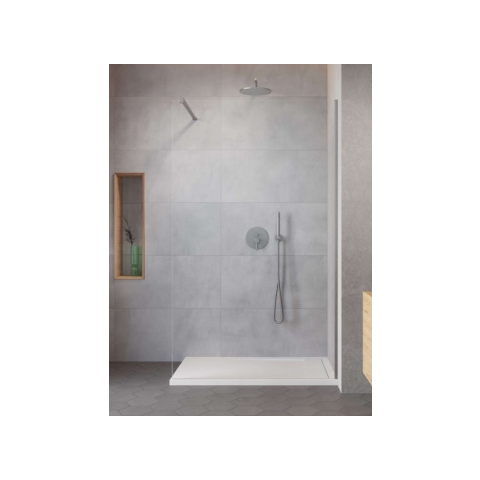 Modo New Brushed Nickel II Walk-in szálcsiszolt króm zuhanyfal 65 átlátszó Elegáns walk-in zuhanyfal minimalista dizájnnal, amely tágasabbá teszi a fürdőszobát. 8 mm vastag Easy Clean üveggel és állítható profillal készült, univerzális beépítésre alkalma