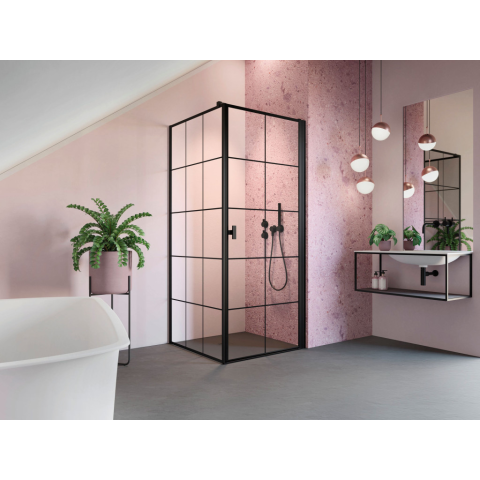 1 kép Radaway Nes Black KDJ I Factory szögletes fekete zuhanykabin 90x80 átlátszó jobbos