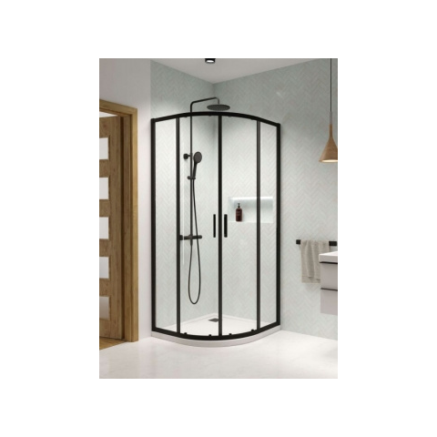 Premium Pro Black PDD íves fekete zuhanykabin 90Bx100J Elegáns íves zuhanykabin 6 mm edzett üveggel és Easy Clean vízlepergető bevonattal. Hangtalan ajtómozgás, állítható fekete profil és mágneses záró rendszer biztosítja a maximális kényelmet és funkcio