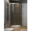 Íves görgős zuhanykabin dupla ajtókkal és fix résszel. Az állítható króm faliprofil lehetővé teszi a fal függőleges eltérésének kiigazítását tökéletes záródást biztosító mágneses tömítő profilok 4-5 mm vastag, edzett biztonsági üveg Elegáns króm fogan