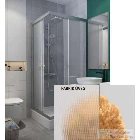 Szögletes, görgős zuhanykabin dupla ajtókkal és fix résszel. Az állítható króm faliprofil lehetővé teszi a fal függőleges eltérésének kiigazítását tökéletes záródást biztosító mágneses tömítő profilok 4-5 mm vastag, edzett biztonsági üveg Elegáns króm
