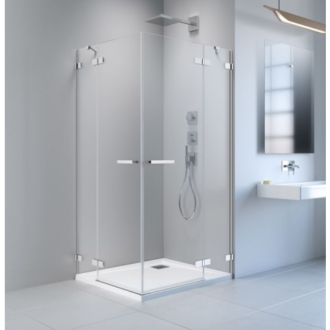 Kifelé-befelé nyíló szögletes zuhanykabin két nyílóajtóval. Arta – Jött, látott, győzött. A királykategória, amely eseménnyé varázsol minden tusolást. A kabin belső üvegfelületével teljesen sík króm zsanérok a könnyű takaríthatóság érdekében. 8 mm vastag