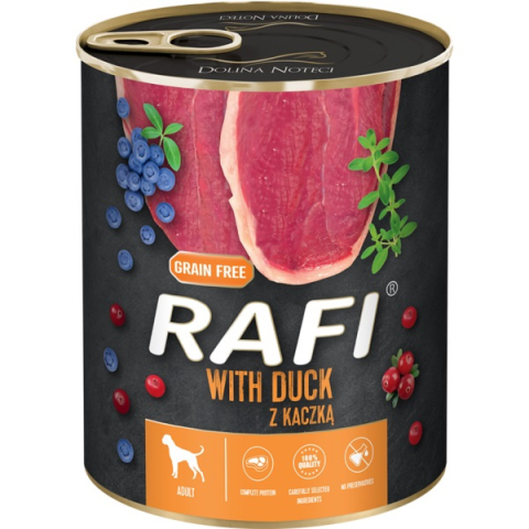 Teljes RAFI Paté Kacsával, Kék - és Vörösáfonyával, Gabonamentes, felnőtt kutya 800 g termékleírás