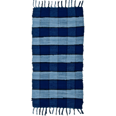 1 kép ragole Rongyszőnyeg, kék, kockás, pamut, 60x120cm