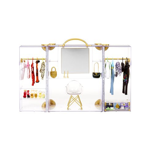 Játék bababútor Rainbow High - dekoráció, ruházat, divat kiegészítők és ékszerek, tárolós, anyaga műanyag és textil, mérete 23,6 × 38,1 × 28,5 cm (Ma×Sz×Mé), ajánlott 6 éves kortól A több mint 30 darab ruhadarabot és kiegészítőt tartalmazó készlet a Rainbow High babákhoz a stílusos öltözködés és a divatelemek minden rajongójának örömet szerez. A praktikus, impozáns átlátszó bőrö