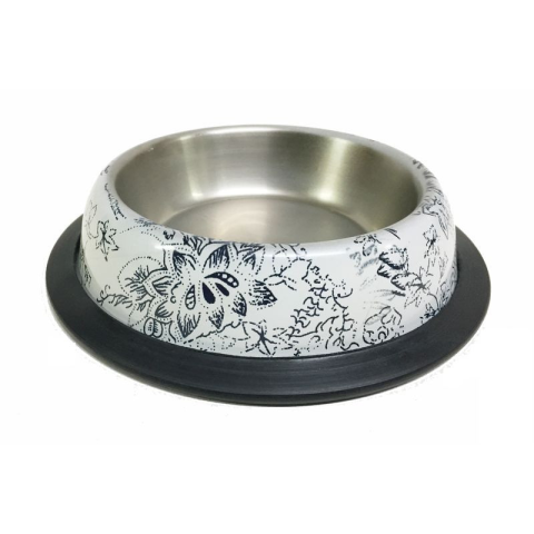 1 kép Raintech Tál Fém Etető Gumi Peremmel, Virágos Mintával, 0,9l / 17cm