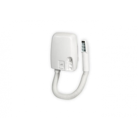 RAMI-2059 fali hajszárító gégecsöves mikrokapcsolós ABS fehér 800W egy kiváló szaniter kiegészítő közintézmények, közszolgáltató helyek vizesblokk kialakításához.