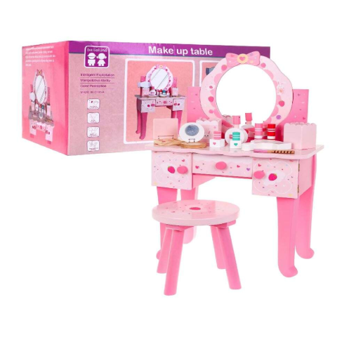 Gyerek sminkasztal szettel: Kicsiknek nagy móka! 👧💖 Ez a rózsaszín fa sminkasztal tökéletes ajándék minden kis hercegnőnek! A szett minden szükséges kiegészítőt tartalmaz a játékhoz, így a kicsik szabadon élvezhetik a sminkelés és a szépítkezés örö...