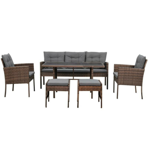 Teljes ramiz Rattan kertibútor garnitúra - kanapé, fotelek, puffok és asztal termékleírás