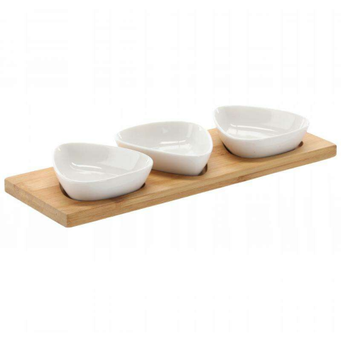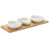 ramiz Tálaló készlet 3 kör alakú kerámia tál + bambusz tálca