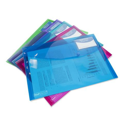 1 kép RAPESCO Irattartó tasak, A4+, patentos, RAPESCO "Eco", áttetsző vegyes színek
