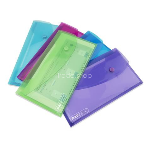 Irattartó tasak, DL, patentos, RAPESCO Eco, áttetsző vegyes színek DL méretével ideálisan használható az irodában, otthon vagy iskolában. -kapacitás: 50 lap -tolltartó a fedlap alatt -méret: 225 x 124 mm (szé x ma) -100%-ban újrahasznosított poli