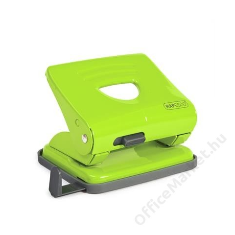 Lyukasztó, kétlyukú, 25 lap, fém, RAPESCO 825, zöld (IR1361) Praktikus kiegészítője minden asztalnak! -kézi kétlyukú lyukasztó -fém borítás, fém szerkezet -könnyen üríthető konfetti tartály -feliratozható névtábla -lyuktávolság: 80 mm -könnyített lyuk