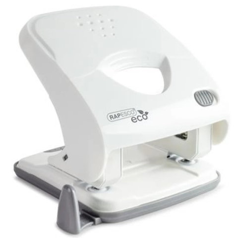 Lyukasztó, kétlyukú, 30 lap, könnyített lyukasztás, RAPESCO "ECO X5", fehér - IR1524 - Asztali lyukasztók 30 lapig - Érjen el többet, kevesebb erőfeszítéssel -kétlyukú kézi tűzőgép -műanyag, borítás, fém szerkezet