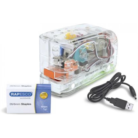 1 kép RAPESCO Tűzőgép, 26/6, 15 lap, műanyag, elemes, USB töltővel, RAPESCO "626EL", átlátszó