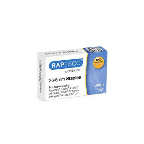 Tűzőkapocs, 26/6, horganyzott, RAPESCO Prémium minőségű anyagokból, szigorú szabványok szerint készült Rapesco kapcsok optimális teljesítményt nyújtanak a legpontosabb tűzéshez -megbízható minőség -galvanizált finomhuzal a könnyű és kényelmes használa