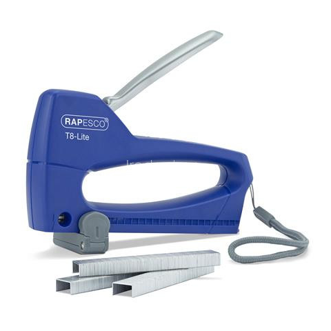 Tűzőpisztoly, hobbi, 13/4, 53/4, RAPESCO T8-Lite A Rapesco T8-Lite: könnyű és erős -kézi tűzőpisztoly -műanyag test, fém alkatrészek -lecsatolható csuklópánt -alsó tűzőkapocs töltés -tűzőkapocs jelzőn látszik, ha újratöltsére van szükség -tűzőkapocs: