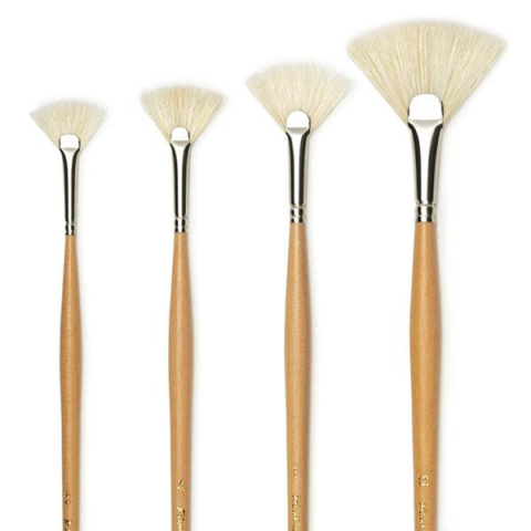 A Raphaël D'Artigny legyező alakú ecset kiváló minőségű disznó sörtéből készült, nikkelezett rézhüvellyel és lakkozott fa nyéllel.