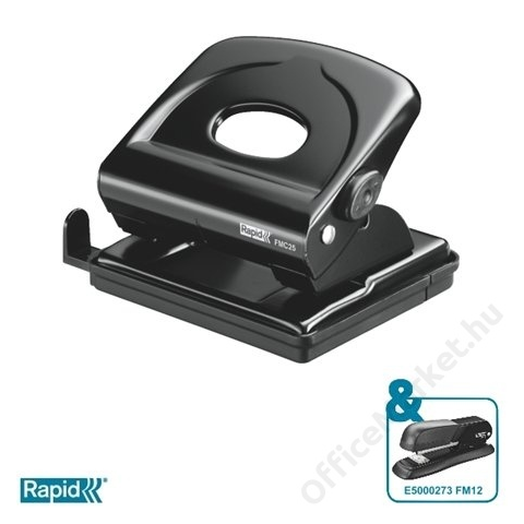 Lyukasztó, kétlyukú, 25 lap, fém, RAPID FMC25, fekete (E21835501) - erős, fém lyukasztó blokkolható lyukasztó karral a helytakarékos tárolás érdekében - irodai használatra ajánlott - az erős, fém konstrukció tökéletes lyukasztást eredményez - nagyméret
