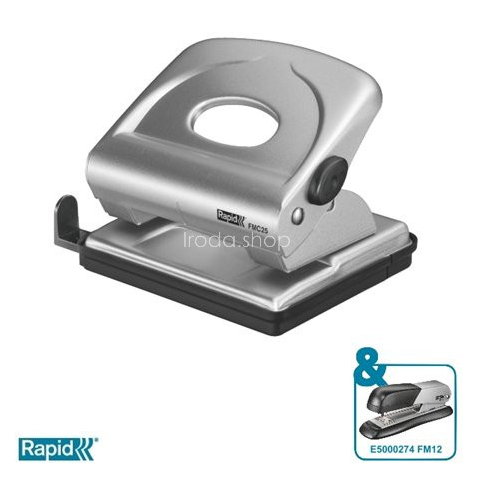 Lyukasztó, kétlyukú, 25 lap, fém, RAPID FMC25, ezüstmetál - erős, fém lyukasztó blokkolható lyukasztó karral a helytakarékos tárolás érdekében - irodai használatra ajánlott - az erős, fém konstrukció tökéletes lyukasztást eredményez - nagyméretű, könny