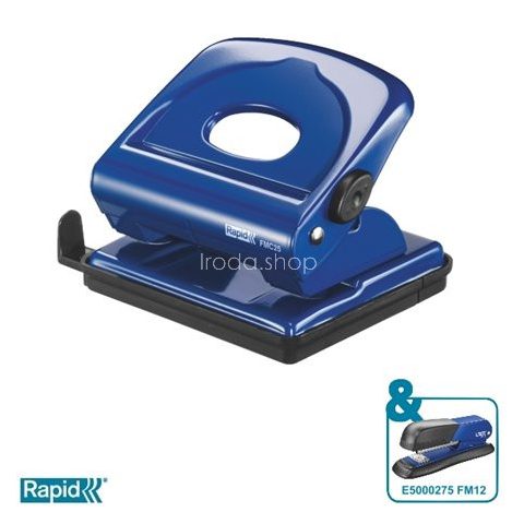 Lyukasztó, kétlyukú, 25 lap, fém, RAPID FMC25, kék - erős, fém lyukasztó blokkolható lyukasztó karral a helytakarékos tárolás érdekében - irodai használatra ajánlott - az erős, fém konstrukció tökéletes lyukasztást eredményez - nagyméretű, könnyen ürít
