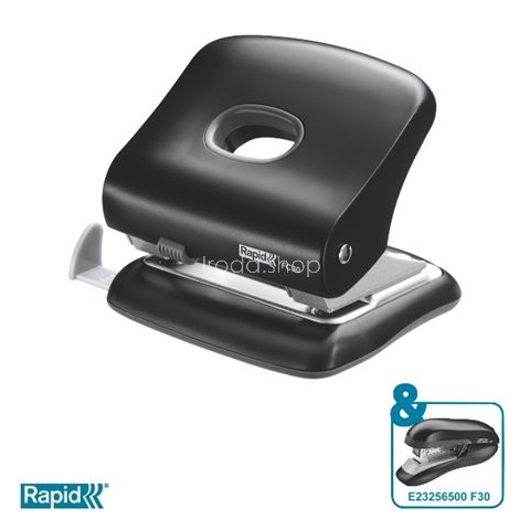 Lyukasztó, kétlyukú, 30 lap, RAPID FC30, fekete - nagyteljesítményű, erős, fém lyukasztó megerősített ABS műanyagból készült karral és talppal - otthoni, iskolai és irodai használatra - könnyen üríthető, műanyag tartály - blokkolható szerkezettel és tá