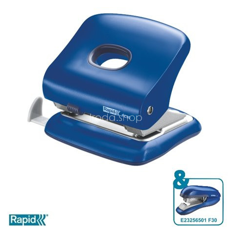 Lyukasztó, kétlyukú, 30 lap, RAPID FC30, vízkék - nagyteljesítményű, erős, fém lyukasztó megerősített ABS műanyagból készült karral és talppal - otthoni, iskolai és irodai használatra - könnyen üríthető, műanyag tartály - blokkolható szerkezettel és t