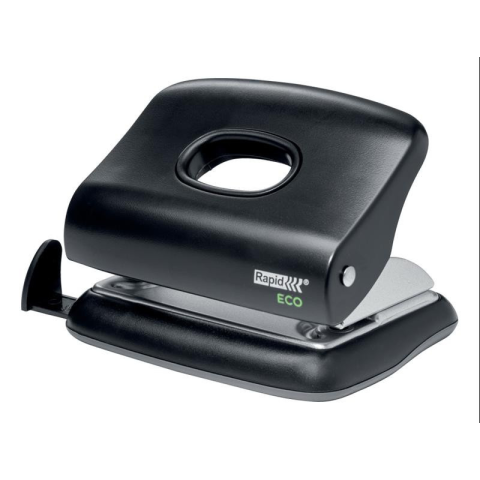 A Rapid Eco kompakt, de erős lyukasztó 74%-ban újrahasznosított kommunális műanyag hulladékból, újrahasznosított, műanyagmentes karton csomagolásban. Erős fém konstrukció. Megerősített, ABS műanyag markolat és talp. Max. lyukasztási kapacitás: 20 lap (80