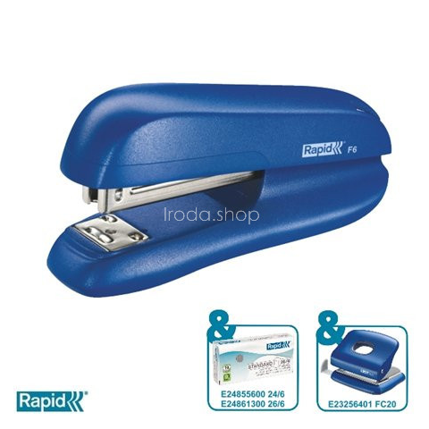 Tűzőgép, 24/6, 26/6, 20 lap, RAPID F6, kék - könnyen használható, erős, féltáras tűzőgép fém szerkezettel - kapacitás: 20 lap - tűzési mélység: 50 mm - javasolt kapocs: Rapid 24/6 és 26/6 Rapid tűzőkapcsokhoz (E24855600 / E24861300) - alkalmas zárt, ny