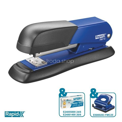 Tűzőgép, 24/6, 26/6, 25 lap, RAPID FM12, kék - erős, fém féltáras tűzőgép gumi elemekkel a talpon és a felső részen - ergonómikus és precíz kialakítás - ideális otthoni és irodai használatra - kapacitás: 25 lap (80 g-os) - tűzési mélység: 55 mm - javas