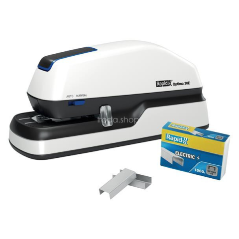 Tűzőgép, elektromos, 20 lap, RAPID Optima 20 A Rapid 20E elektromos tűzőgép kényelmes tűzést biztosít egyszerre akár 20 lap (80 g/m2) tűzéséhez, így időt takarít meg otthon vagy a munkahelyen. -kényelmes és fáradságmentes tűzés teljesen automatikus va
