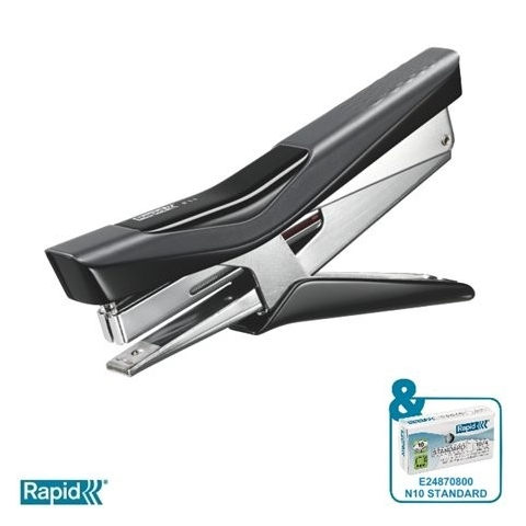 - kifinomult formatervezésű, kézi tűzőgép acél szerkezettel és felhasználóbarát, puha műanyag markolattal - kapacitás: 15 lap - tűzési mélység: 50 mm - javasolt kapocs: Rapid 10/4 (N10) STANDARD horganyzott (E24862900) - alkalmas zárt tűzésre - kényelmes