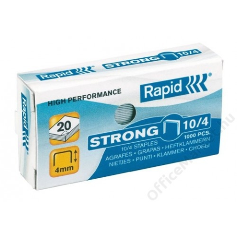 Tűzőkapocs, 10/4, horganyzott, RAPID Strong (E24870800) erős huzalból készült tűzőkapocs éles szárakkal a pontos tűzés érdekében, 20 lapig ideális SuperFlatClinch™ (extra laposan tűző) technológiával rendelkező tűzőgépekhez 2-20 lap tűzéséhez (80 g-os