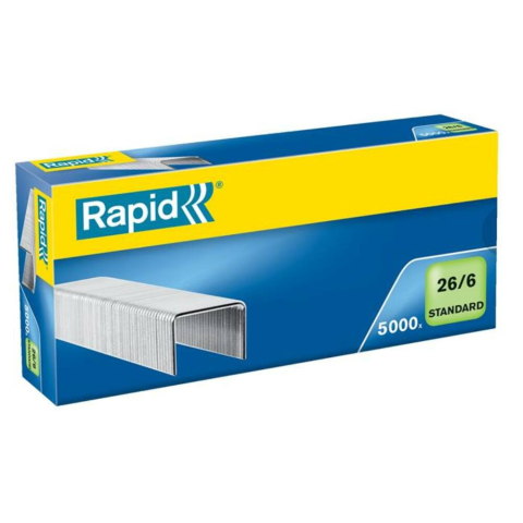 Tűzőkapocs, 26/6, horganyzott, RAPID Standard (E24861800) - puha huzalból készült tűzőkapocs a magas fokú kényelem érdekében - maximum 20 lap összetűzéséhez - horganyzott puha kapocs a legkényelmesebb felhasználás érdekében - méret: 22 x 116 x 56 mm -