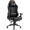 Gamer szék - 90° - 135° tartományban állítható háttámla, magasságban, előre/hátra és dőlésszögben állítható 3D kartámaszok, párnák nyaki és ágyéki gerinctámaszhoz, állítható magasságú ülés perforált huzattal, a háttámla tetszőleges pozícióban történő rögzítésének lehetősége, lengőszerkezet állítható lengésállósággal, burkolat minőségi PU bőrből, forgatható konstrukció, kemény kerekek szőnyegre is alkalmasak, acél alváz (kereszt),