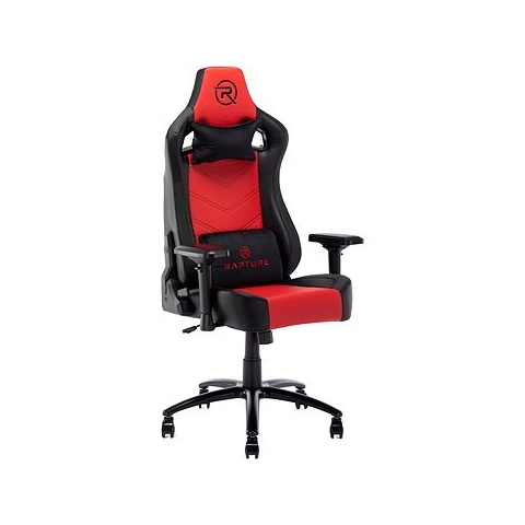 Gamer szék - 90° és 160° közötti tartományban állítható háttámla, magasságban, oldalirányban, mélységben és szögben állítható kartámaszok, nyak- és deréktámasztó párnák, állítható magasságú ülés, bármilyen pozícióban rögzíthető háttámla, állítható hintázási ellenállás, szintetikus bőr, perforált részekkel ellátott ülés és háttámla, forgó konstrukció, szőnyeghez alkalmas kemény görgők, terhelhetősége 130 kg RAPTURE IRONCLAD GAMER
